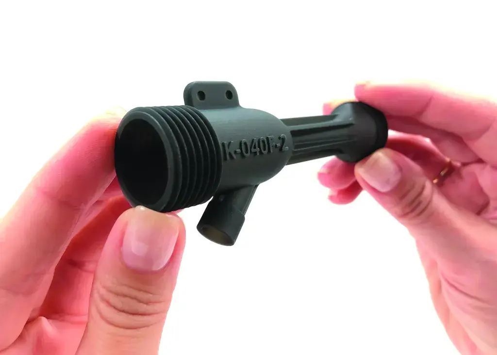 - Figure 4 TOUGH-BLK 20, a strong ABS-like black plastic with industry-leading UV stability for high performance prototyping and production applications where lifecycle stability is critical and mechanical properties fit. It provides high precision, smooth surface finish and exceptional sidewall quality with minimal finishing. At TCT 2019, the company will showcase a threaded water hose that demonstrates the look-and-feel of injection molded ABS plastic with fine detail and smooth surface finish for form and fit testing.